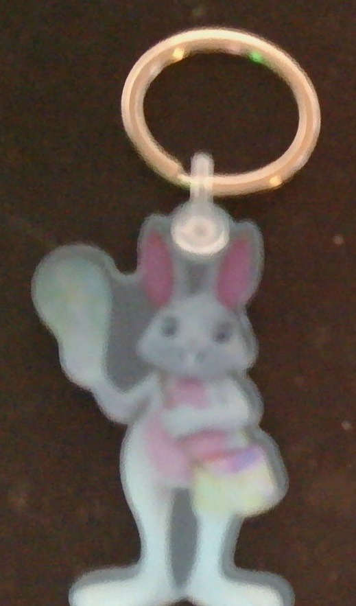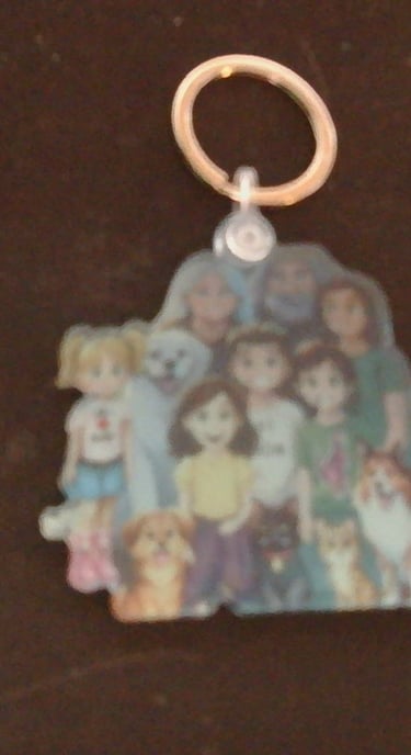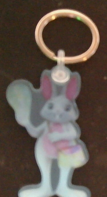 I added photos of the new keychains/backpack charms that just came in. I left the protective cover on them so they do look a little "off" in the picture--but it keeps them safe and scratch-free until they're ready to be used.